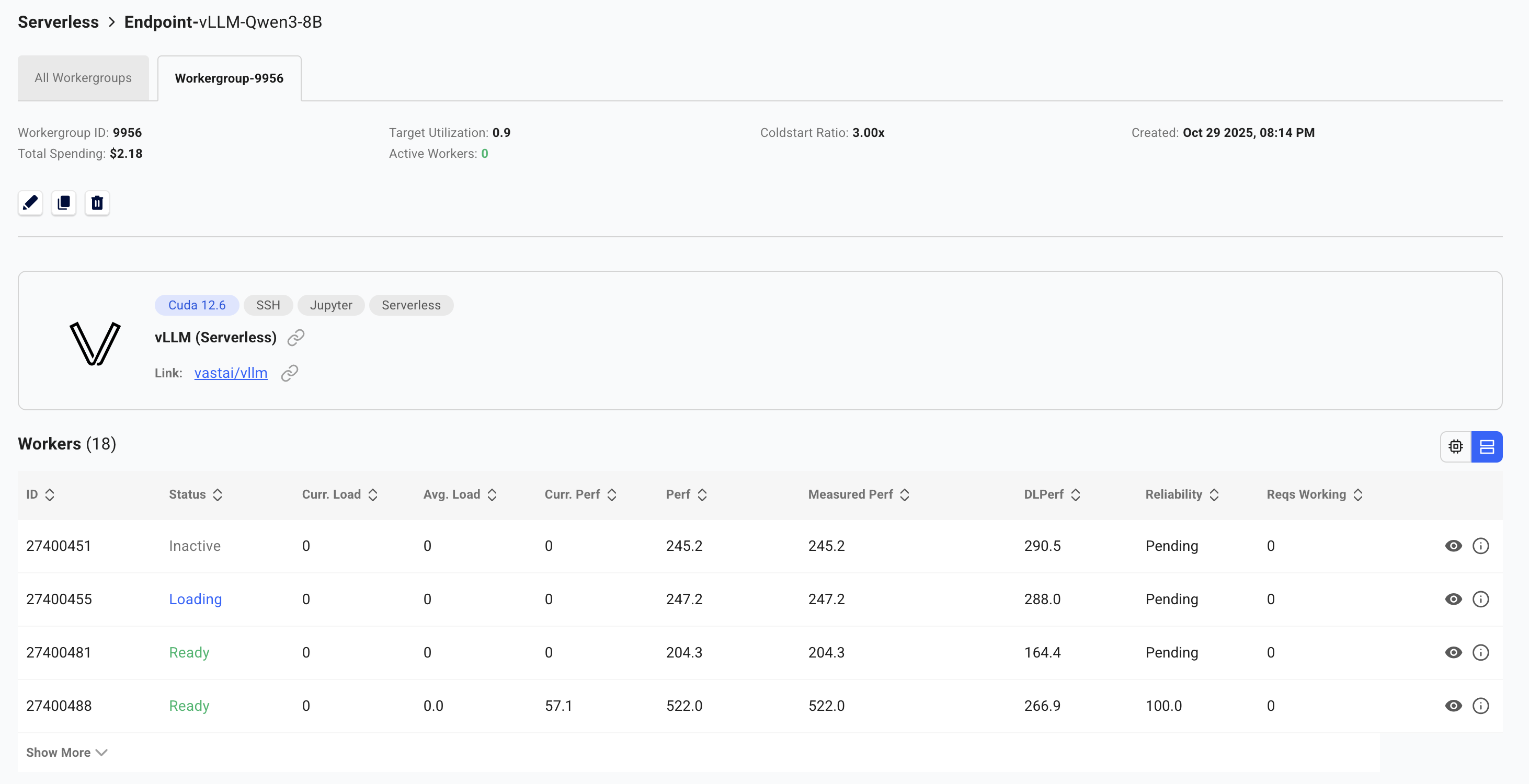 - Loading: Worker is starting up and loading the model into GPU memory